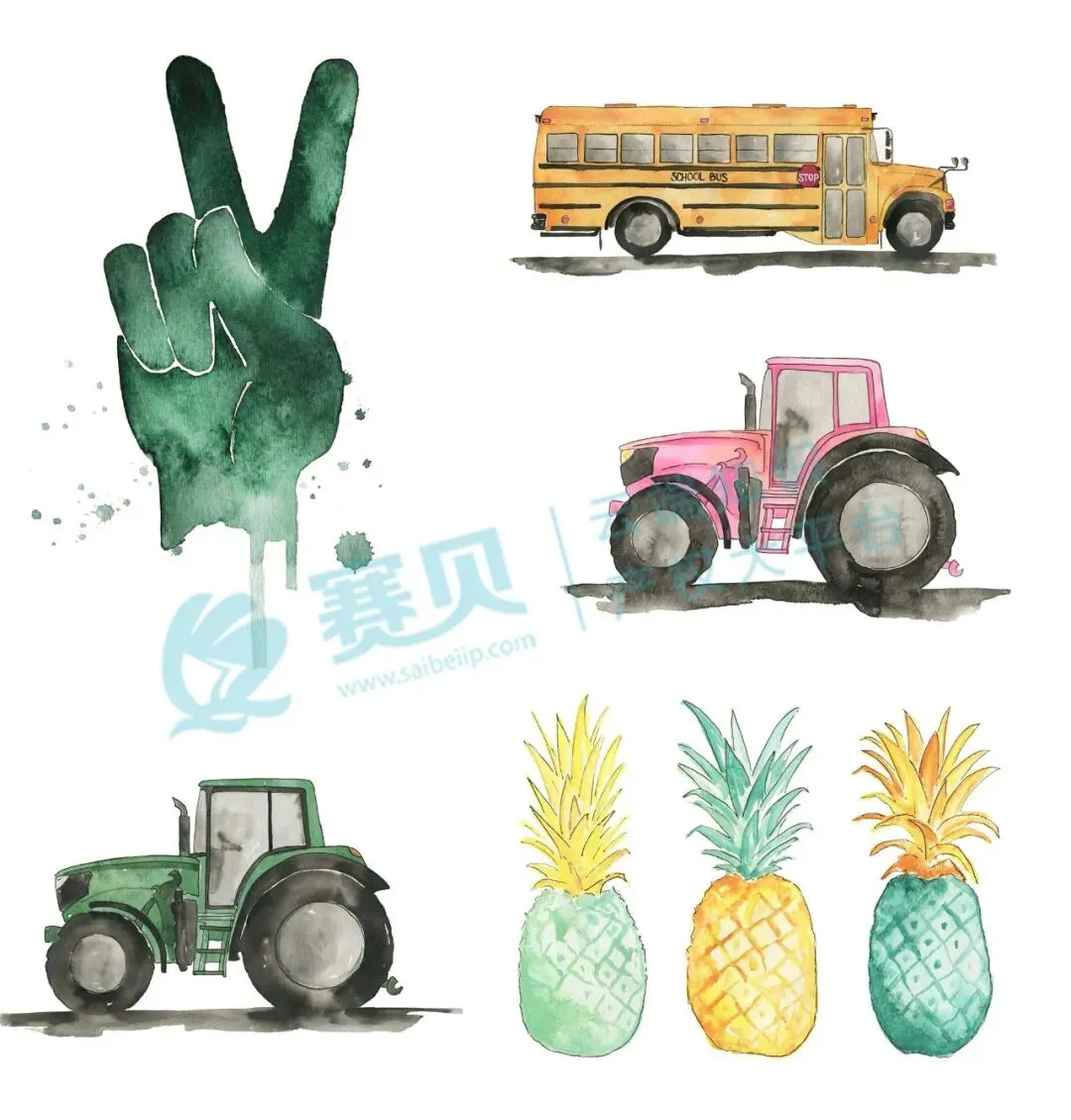 这次维权的是5项水彩手绘的艺术作品,登记号分别为 VA 2-428-493、VA 2-428-497、VA 2-428-464、VA 2-428-512、VA 2-428-540,作品名称依次是《Green Tractor》《School Bus》《Tropical Pineapple》《Pink Tractor》《Peac》, 赛贝提醒跨境卖家,未经授权不得擅自使用,以免引发侵权风险。