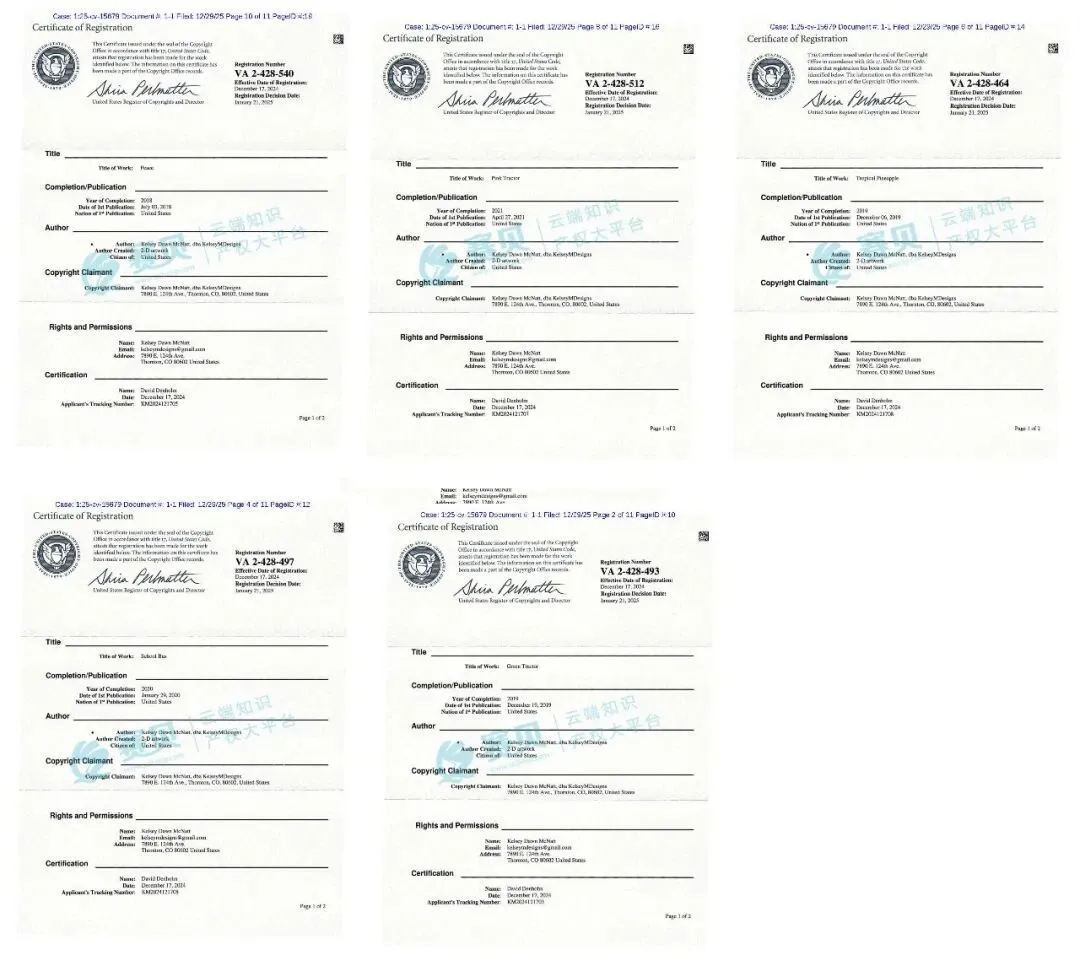 赛贝在自主研发的TRO案件查询系统获悉,Keith律所代理原告Kelsey Dawn McNatt,于2025年12月29日在美国伊利诺伊州北区联邦地区法院发起了版权侵权TRO诉讼,案件号为25-cv-15679。此次诉讼直接瞄准了34家跨境电商相关主体,涉及未经授权使用原告原创艺术作品的侵权行为。