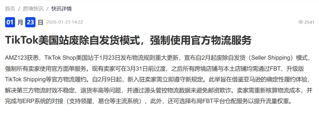 在这样的背景下,那条真正影响卖家命运的政策,被抛了出来——2月9日起,新卖家无过渡期,强制官方面单;4月1日起,美区全面废除自发货。