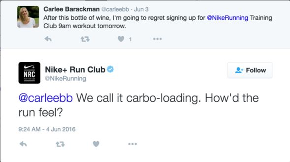 除此之外,耐克的每条推送都风趣十足,可以调动起十足的趣味性。这样一来也更加方便消费者的阅读。品牌也会在社媒上和粉丝进行亲切的互动,从来加深品牌和消费者之间的联系。所谓“更接地气”,就是如此。