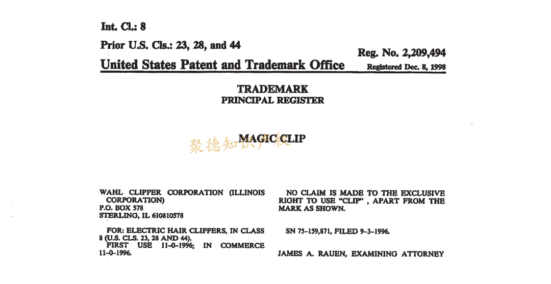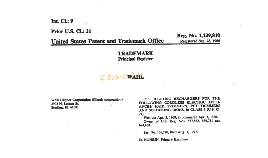 注册美国商标类目8类、9类、10类、20类、21类,比如电动理发器、电动剪磨刀器、理发器、电动剃须刀、动物毛发修剪器、头发梳、用于清洁理发器的刷子等。