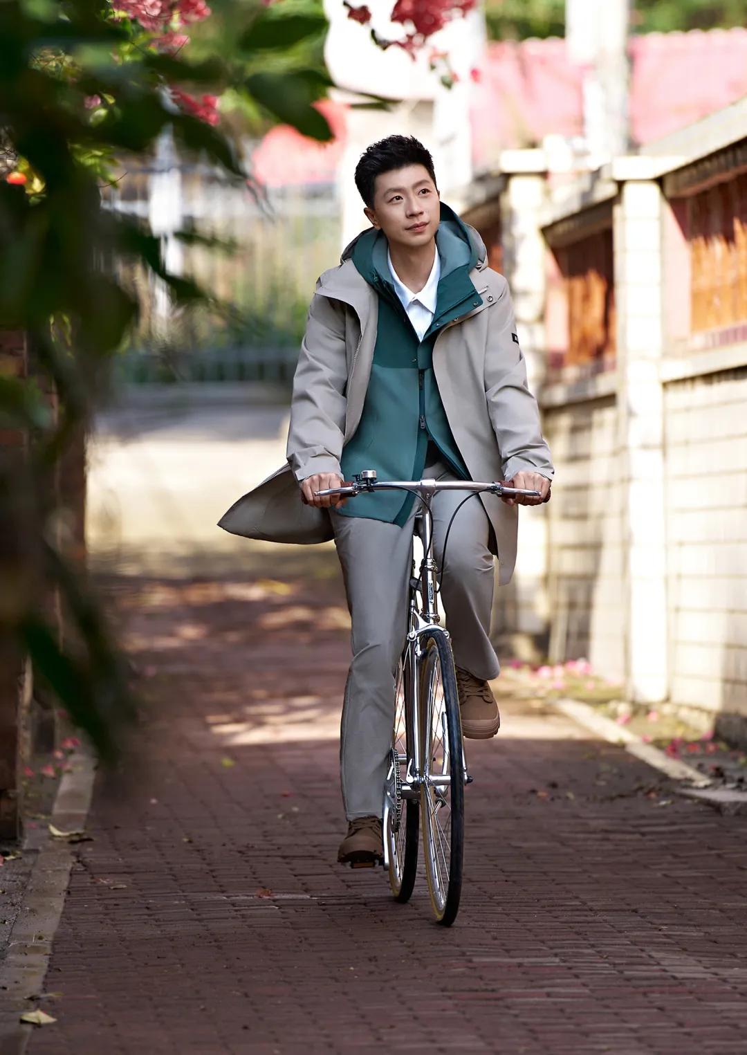 马龙身着的 AIGLE GORE-TEX® 两层防水长款风衣与内搭夹克,浅茶棕与庭园绿的自然色系相映成趣,无不展现 AIGLE 融合功能科技的法式美学。作为拥有 170 多年历史的品牌,AIGLE 始终秉持对匠心工艺的坚持与尊重。这次城市探索之旅,亦展现了品牌对文化传承的深厚敬意。