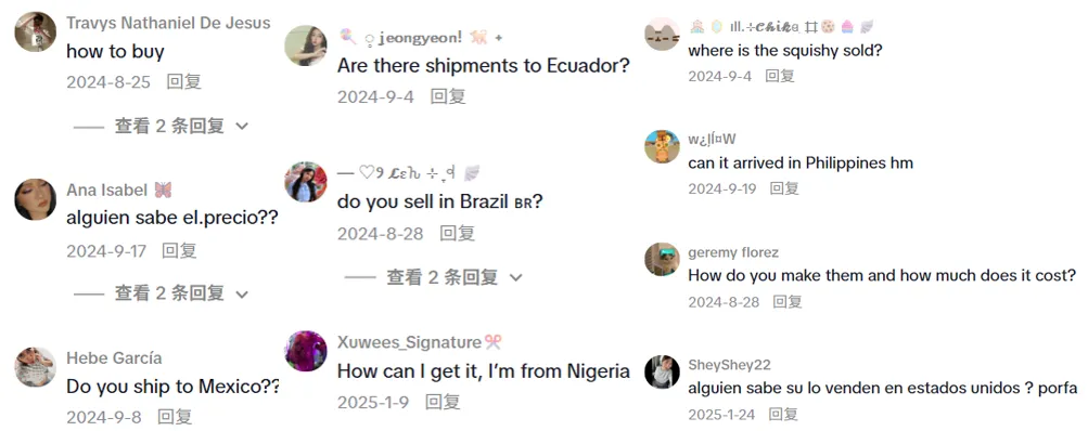 评论区来自世界各地的用户询问购买|图源 TikTok