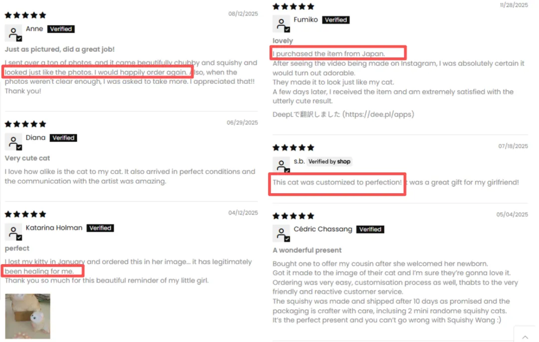 「Meow Meow Wang」的规模不算大,但利润空间充足,用户粘性较高,更像在构建一个小而美的品牌生意。更重要的是,她验证了一件事,即使高度标准化的低价产品,基于用户真实的情绪需求和高品质的手工设计,同样能做出高单价。