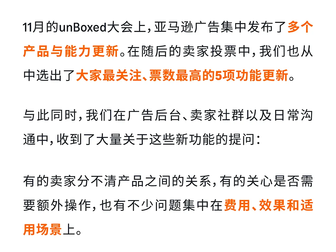 在 11 月的 unBoxed 大会上,亚马逊广告集中发布了多项产品与能力升级,覆盖创意生产、效果衡量、广告展现形式以及品牌词投放等关键环节。围绕卖家最关心的真实问题,本文以 Q&A 的方式,对这些更新进行了系统拆解。