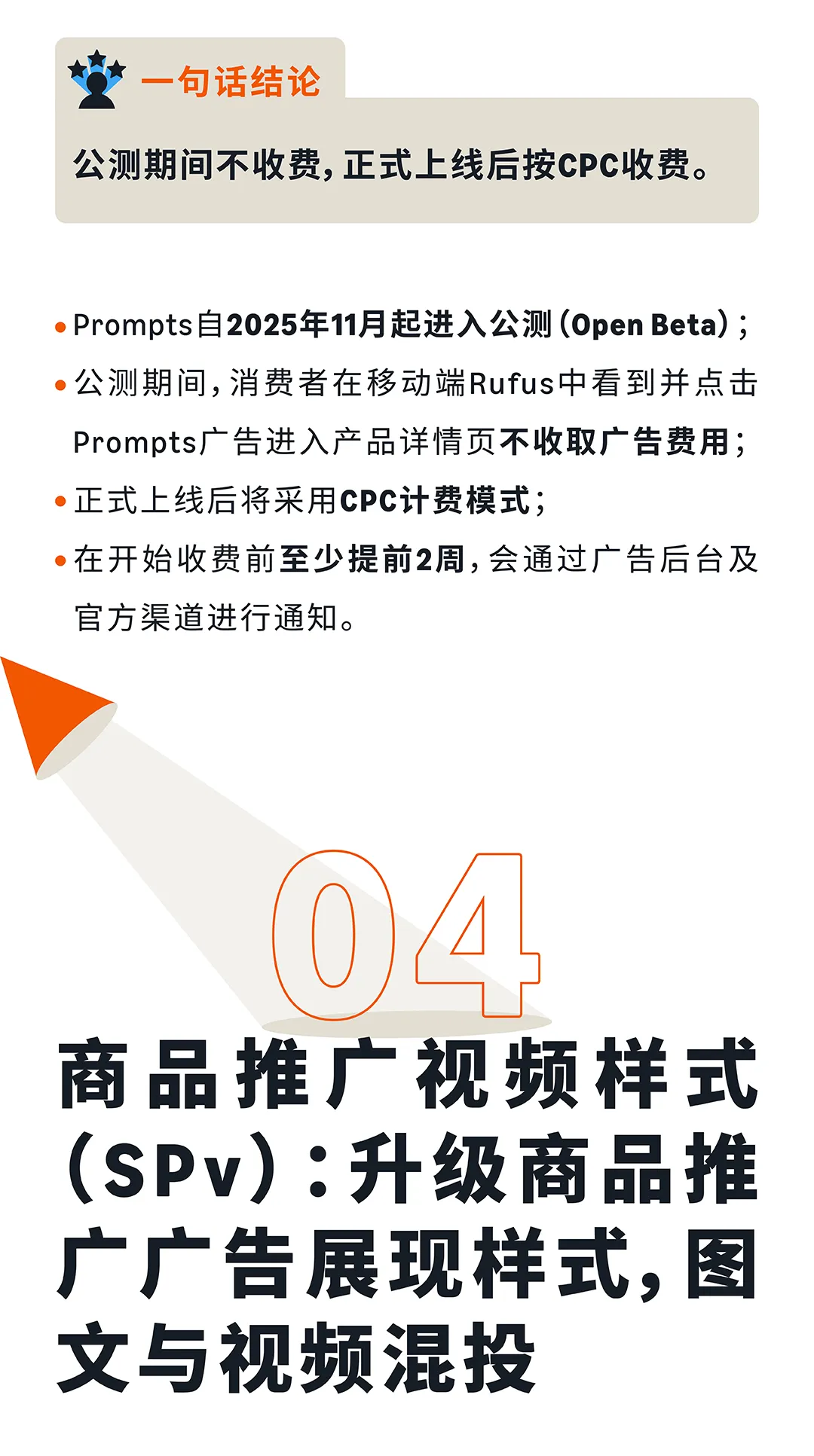 在广告展现形式上,亚马逊视频广告能力也在持续拓展。商品推广视频样式(SPv)让视频素材与图文 Listing 混合展示,在不改变原有投放逻辑的前提下,为产品提供更直观的信息呈现,帮助提升点击与转化效率。