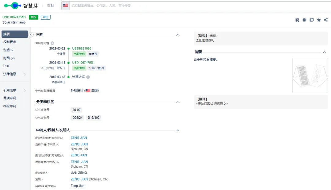 本案涉及一项产品外观专利,申请日期为2022年3月22日,下证日期为2025年3月18日。在此日期后上架的相关产品都有侵权风险,请卖家们仔细排查,避免侵权!