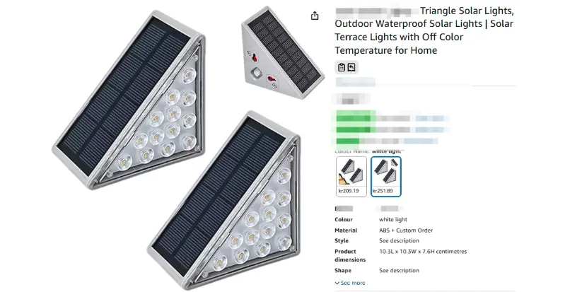 各位做户外灯、庭院灯、台阶灯的跨境卖家注意!本案件的原告是一位中国的卖家,专注户外照明与灯具类目,深耕亚马逊等平台多年。他针对欧美户外庭院场景,自主设计了这款太阳能楼梯灯,并成功申请美国外观专利,依靠高亮照明、IP67 防水、免布线太阳能充电、两种安装方式的优势,成为户外小灯类目里的稳定爆款。