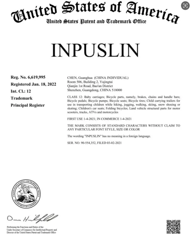 INPUSLIN婴儿车品牌商标维权!