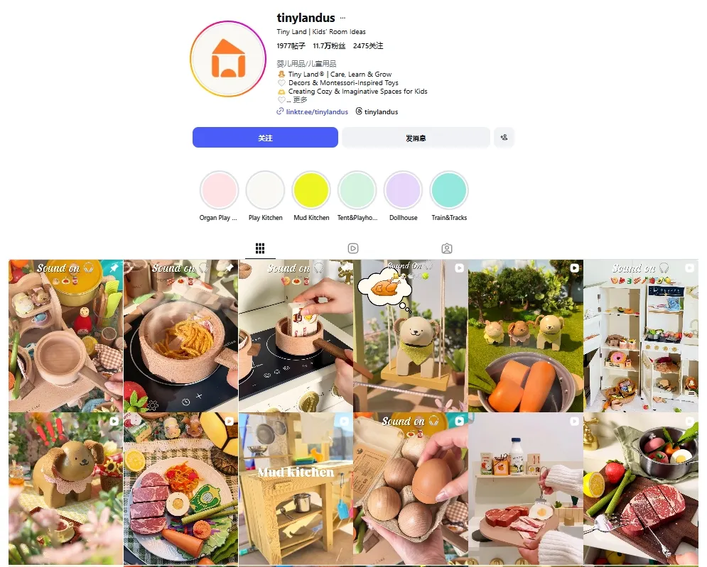 因此,从品牌视角来看,Tiny Land并不仅仅是在销售玩具产品,而是在构建一套 围绕儿童成长与家庭互动的生活场景产品体系。这种定位让品牌更容易融入家庭环境,也为其后续在社媒上的传播提供了天然素材。