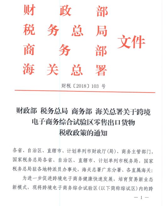 早在2018年9月份,国家财政部就联合国税总局、商务部等部门联合发布了《关于跨境电子商务综合试验区零售出口货物税收政策的通知》。