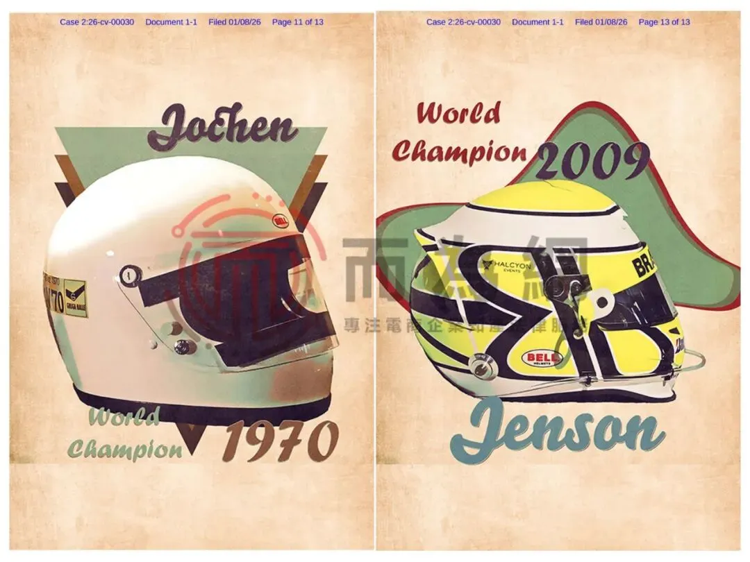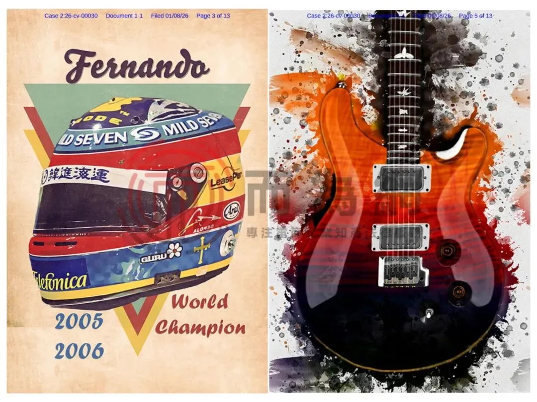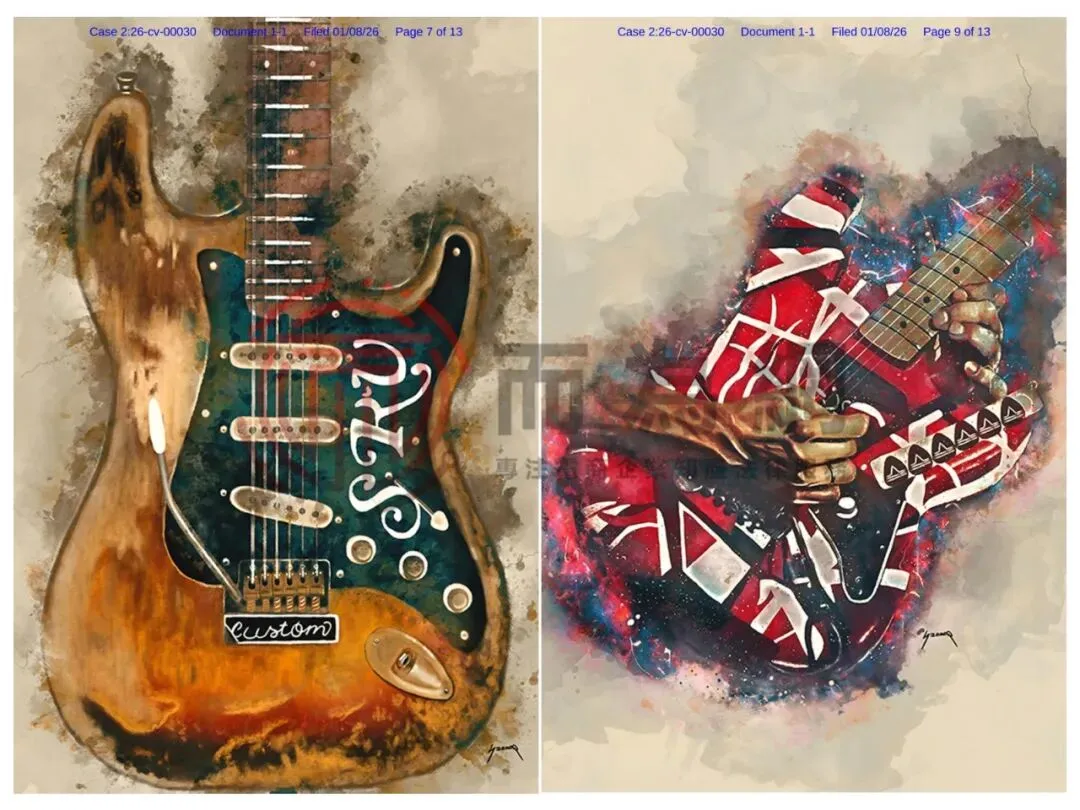 【侵权快讯】26-cv-00030 Ference律所代理6张复古插画发案!涉及吉他、头盔等元素!