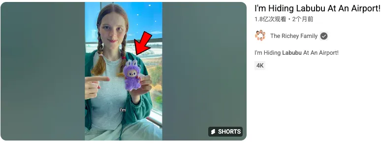 *YouTube上“Labubu”关键词播放量最高的一条视频达到了1.8亿次观看
