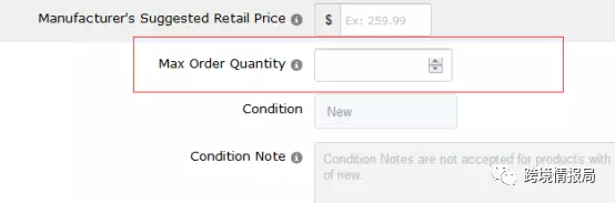 因此,Percentage Off(购买折扣)在卖家没有限制最大购买数量并且与达人的关系不牢固的情况下,为避免这种情况的发生,建议大家在运营过程中最好对Listing设置最大购买数量,具体位置在“产品刊登页面 Offer—Max Order Quality(最大购买数量)”一栏设置,比如在Max Order Quality填“5”,那就是买家最多只能买5个啦。