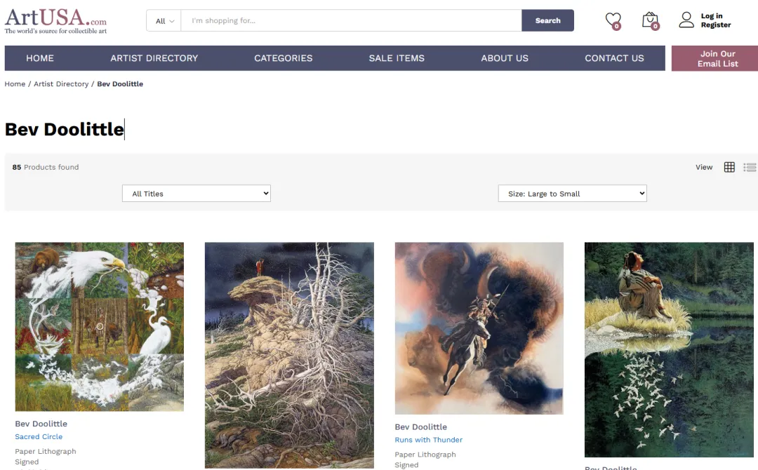 官网:https://artusa.com/artist/bev-doolittle/?post_name=&orderby=size-desc