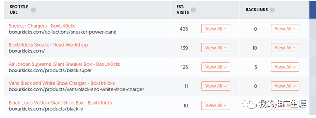 这个网站获取排名的主要关键词有:shoe chargers,big jordan shoe box,custom shoe box storage等等。