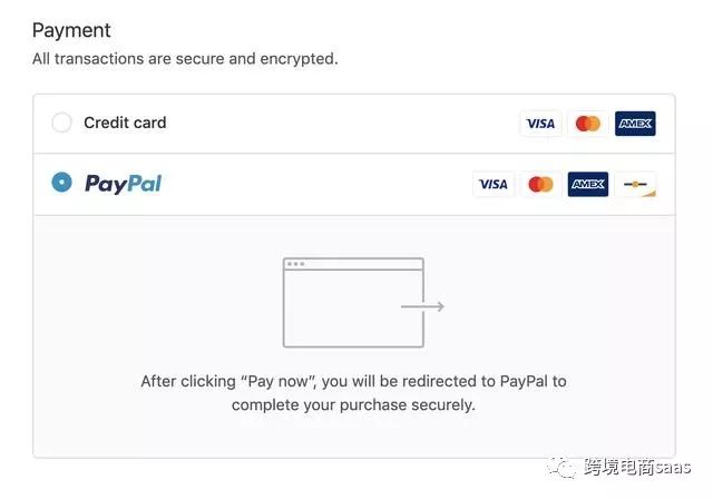 而如果仅使用paypal,用户则需要跳转至paypal页面进行付款操作。