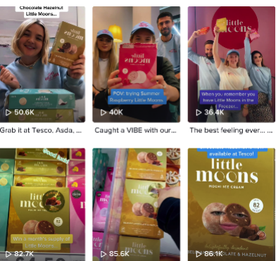 2021年初,一位英国女顾客在 TikTok平台发布了自己在超市疯狂搜寻 Little Moons 冰激淋的视频,获得了高达5亿的点击量,引爆社交媒体。随后 Asda, Morrisons 和 Sainsbury 等大型连锁超市纷纷伸出了橄榄枝,让品牌进入了高速成长的通道。