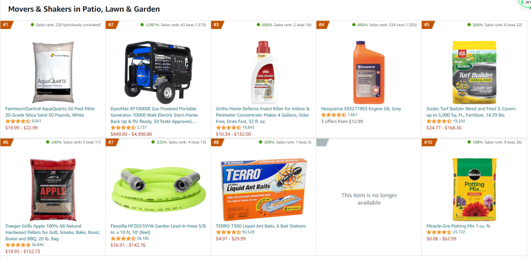 今早10.59分,Patio, Lawn & Garden类目几乎全部洗牌,除了第一名的泳池过滤器。重点是,地毯相关产品几乎都不见了。