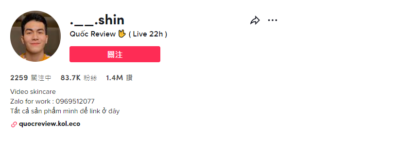 通过嘀嗒狗数据可发现,该产品虽然只有一条带货视频,但是这条带货视频仅发布了两天便获得了170万的播放量。带货达人@.__.shin的TikTok账号虽然只有83700粉丝数,但是他所发布的作品已达到140万点赞量。