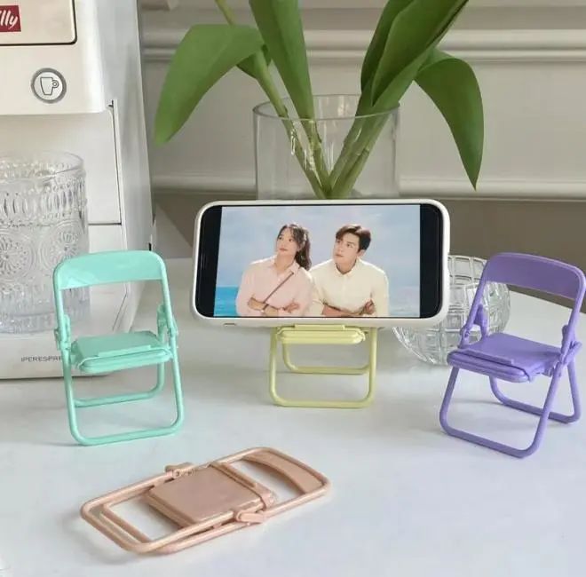 这款可折叠椅子手机支架通过椅子上的凹槽来固定手机,它采用优质塑料材料制成,健康环保,做工精致,小巧便携,不占空间。