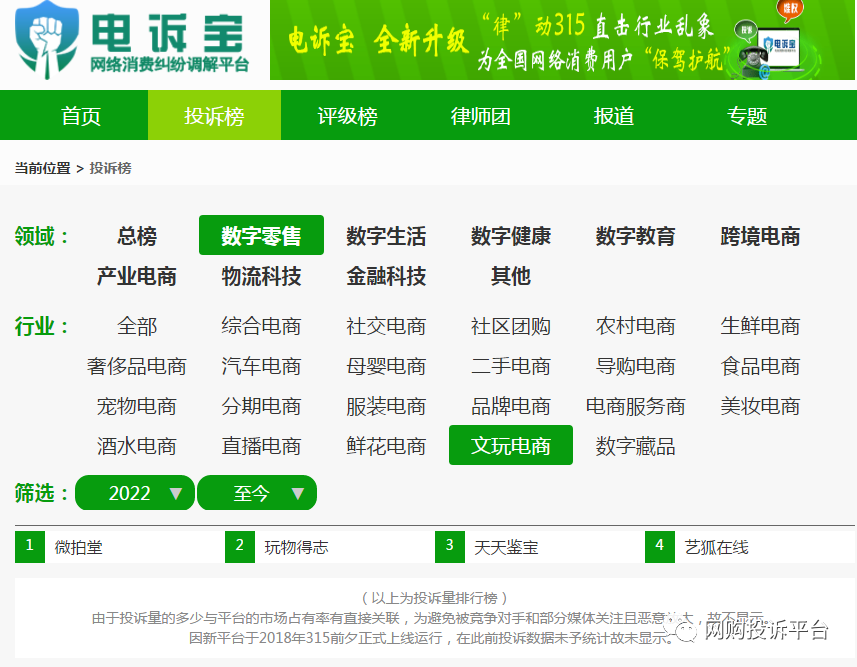 网经社企业库(COP.100EC.CN)显示,微拍堂隶属于杭州微拍堂文化创意有限公司,该公司成立于2014年12月18日,注册于浙江省杭州市西湖区,法定代表人为林志明。其自称是一个社交类C2C拍卖平台,通过移动互联网技术,致力于为用户提供交流分享、商品购买的平台。根据“电诉宝”受理的数字零售中的文玩电商领域用户有效投诉显示(依据投诉量排行),微拍堂排名第一位。同样被投诉的类似平台还有:玩物得志、天天鉴宝、艺狐在线等。