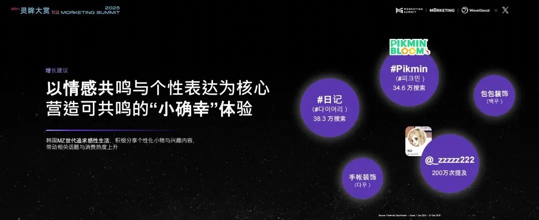 对于品牌而言,应该抓住这种情绪和个性表达,打造自然、有共鸣的内容体验,促使用户主动参与进来。也可以考虑从低门槛、高情绪价值的内容与产品切入,将情绪与感性注入产品与营销叙事,营造让人产生共鸣的“小确幸”体验,吸引和打动MZ世代的韩国用户。