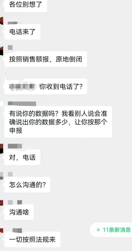 更令卖家感到压力的是,部分收到短信的商家在昨日(10月29日)又接到了税务局的直接电话沟通,进一步核实其申报情况。