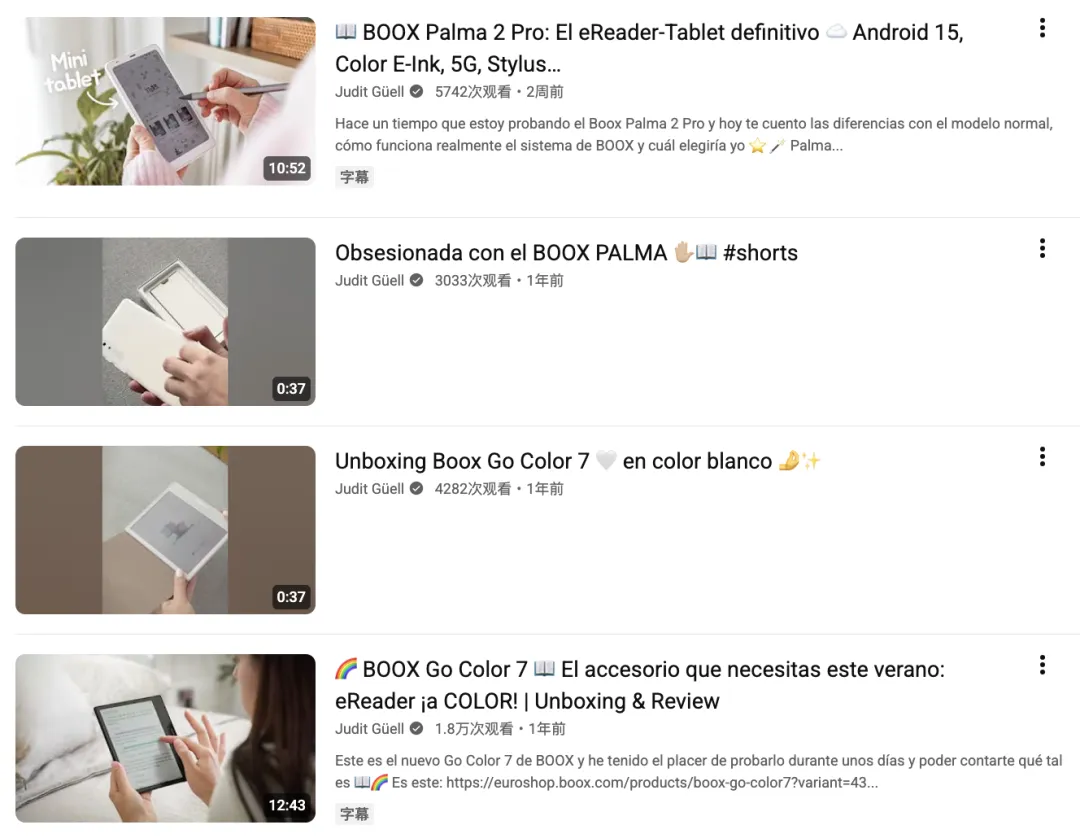 她的频道聚焦苹果生态使用技巧、数字生活整理与效率工具,受众主要为追求简洁有序数字生活的年轻用户——这群人恰好是电纸书产品的核心潜在消费者:他们热爱阅读、注重生产力、愿意为更好的数字体验付费。