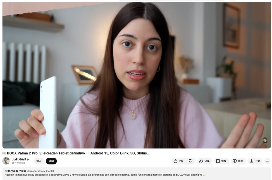 电纸书品牌BOOX与西班牙语科技博主Judit Güell的合作,正是一场围绕“深度体验”和“生活方式种草”的精准营销。