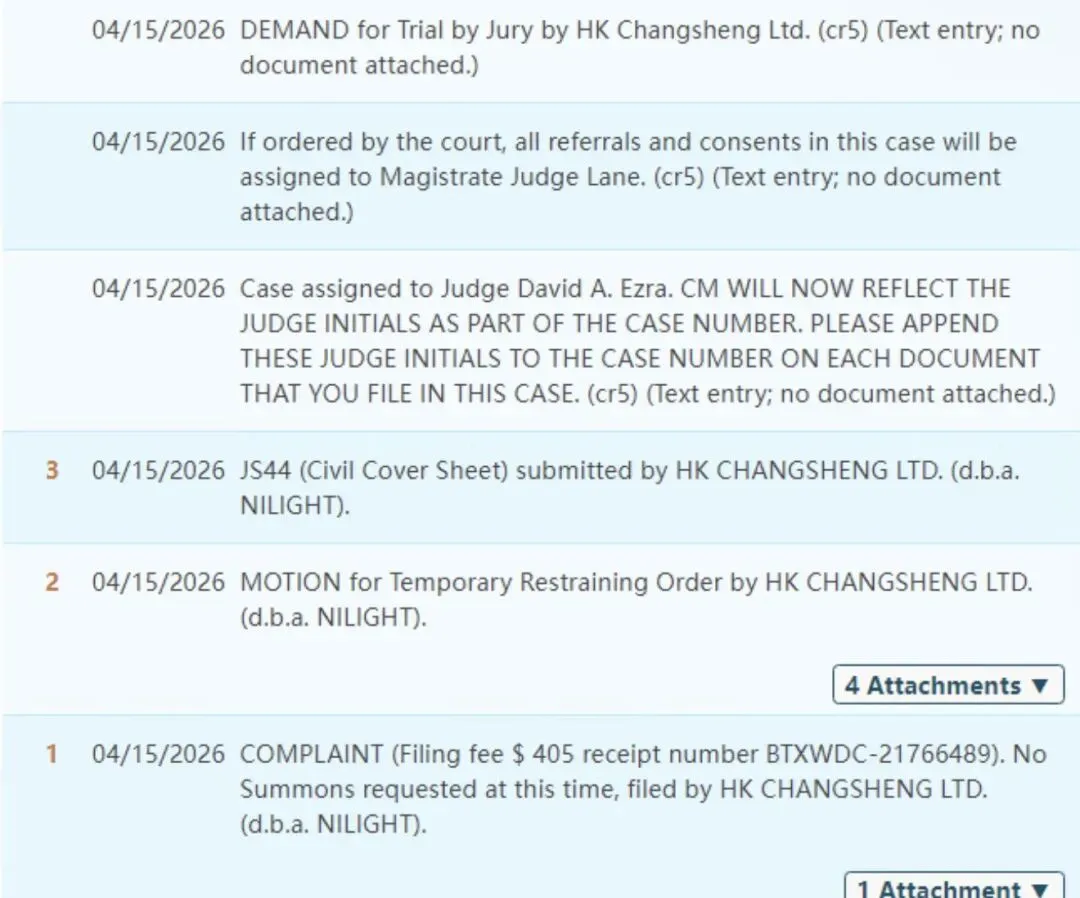 【26-cv-00945】NILIGHT汽车LED照明商标维权!跨境卖家速看避雷!