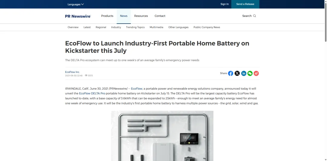 早在众筹上线前半个月,EcoFlow就发布预热PR,提前布局市场教育: