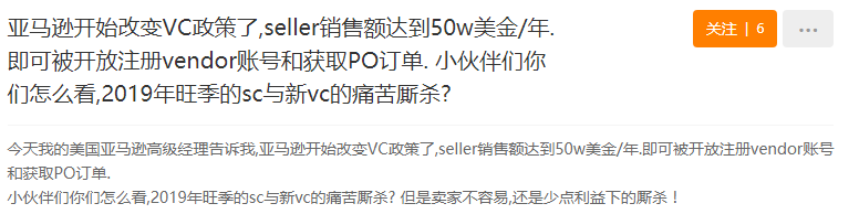 近日,有卖家表示,自己被告知亚马逊开始改变VC政策了,销售额达到50万美金/年,可被开放注册vendor账号和获取PO订单,而信息来源是这位卖家的美国亚马逊高级经理。