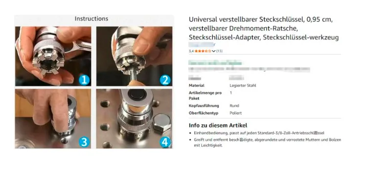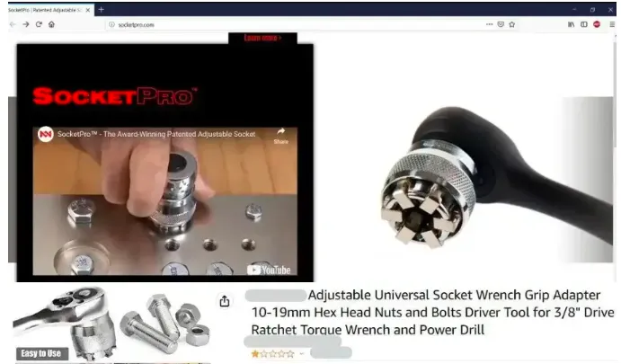 原告Motionware Enterprises Inc.是一家主营可调套筒扳手设计、生产与销售的企业,其核心产品SocketPro可调式扳手,是一款可调节的万能套筒扳手,扭矩大,适用于各种六角螺栓,号称一个能顶一箱子的万能扳手。产品采用优质钢材制成,硬度高、不易生锈且坚固耐用。Motionware Enterprises Inc.品牌旗下这款Socketpro扳手,其最核心优势在于其可调节套筒设计,可以适配不同尺寸的螺母和螺栓,用户在使用过程中无需频繁更换工具,即可轻松应对各种维修任务,大大提高了工作效率,同时减少工具携带的负担。是日常维修、建筑、家居装修、汽车保养、木工等工作的好帮手。需要警惕的是品牌方Motionware Enterprises Inc.早在2022年底已经就曾隐匿维权后成功TRO冻结了431店铺。
