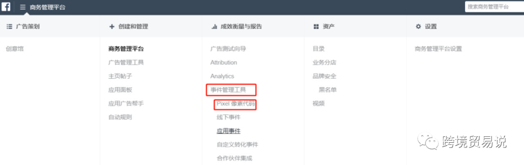 注:只有Facebook商务管理平台管理员才能创建 Facebook Pixel 像素代码。