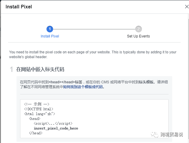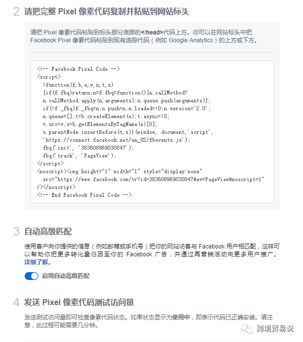 2、在Facebook事件管理工具中的Pixel 像素代码选项卡