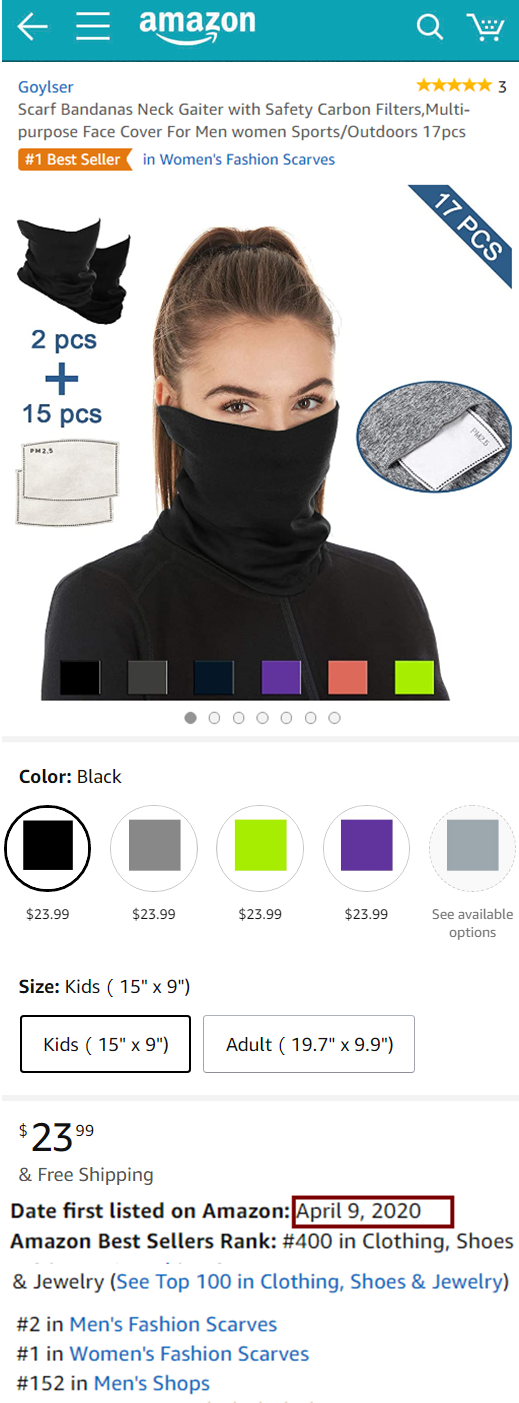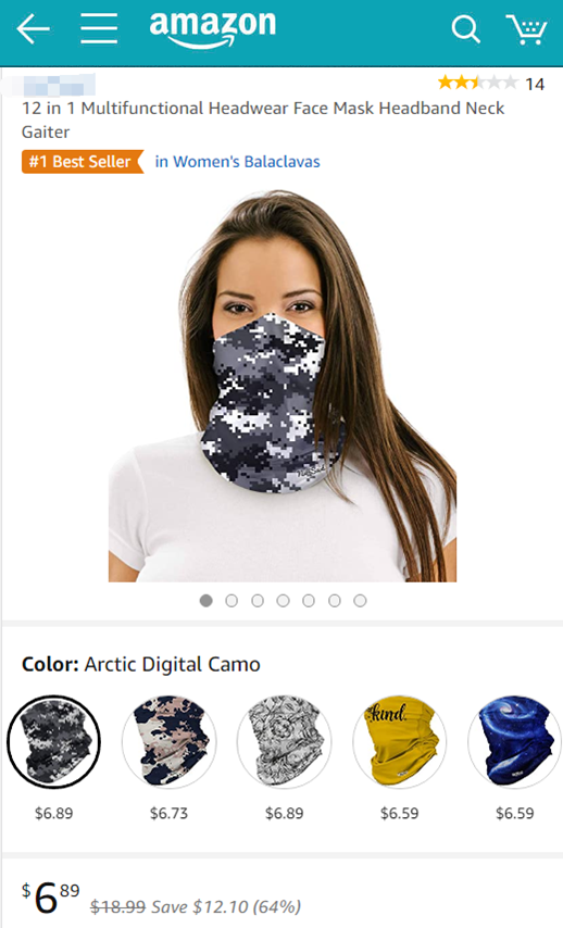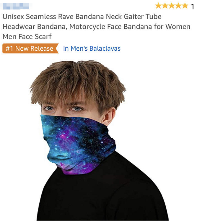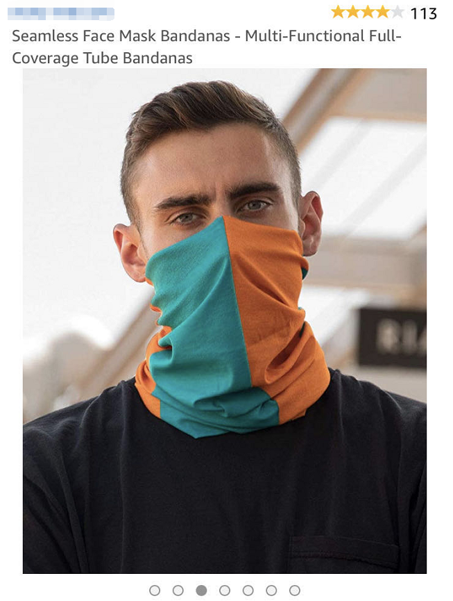 以上这些都属于比较传统的Bandana围巾。脑筋转速更快的卖家,针对疫情在围巾产品上做了一个简易创新!