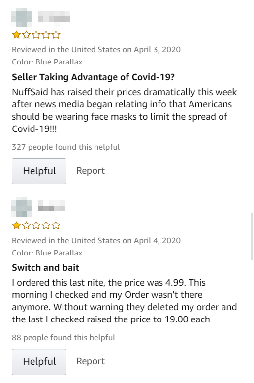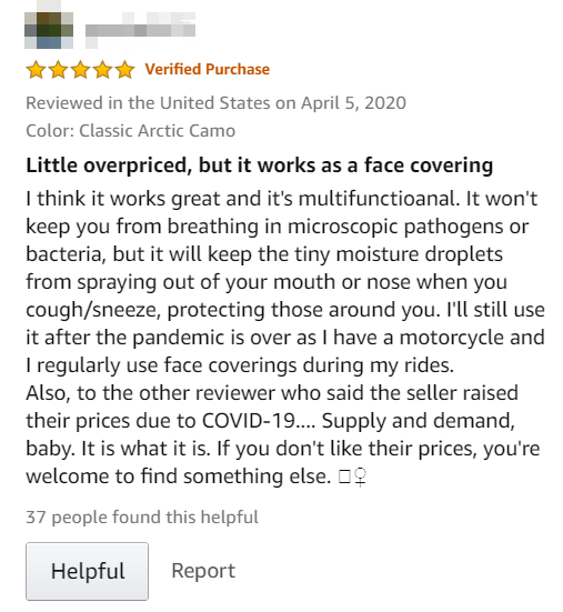 买家购买的原因,真的不是为了时尚搭配还是户外运动,而是听了新闻报道后希望戴上围巾隔开病毒,所以评论的内容,大都和产品涨价有关。