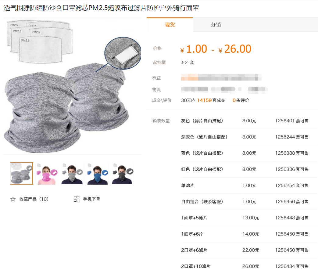 即便那款在亚马逊上售价23.99美金、带有PM2.5滤芯的Bandana围巾,在1688上也能找到对应产品。相似的组合套餐批发价26元,差价有近6倍。