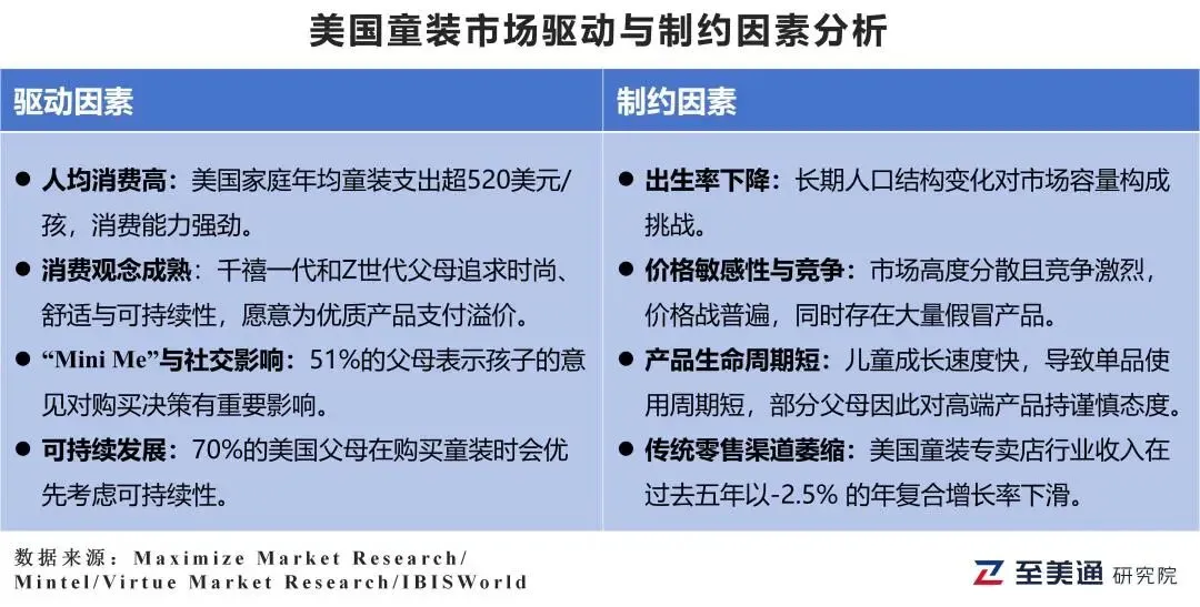 美国是全球最重要和成熟的童装市场之一,尽管面临出生率波动等挑战,但凭借高人均消费和强烈的品牌意识,市场持续增长。