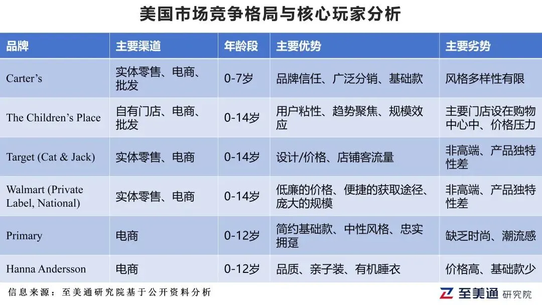 美国童装市场格局多元且碎片化,中国出海企业需明确自身定位,以应对不同层面的竞争。