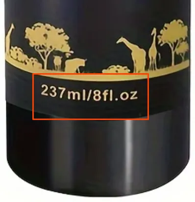 根据商品特性,通常用重量、体积展示商品的公制和美制净含量。净含量需要以英语和法语出现在主展示面板上,并和其他标签信息形成鲜明对比。计量公制符号一般被认为已经有双语属性,但如果用完整的单词作为计量单位,则需要使用双语。