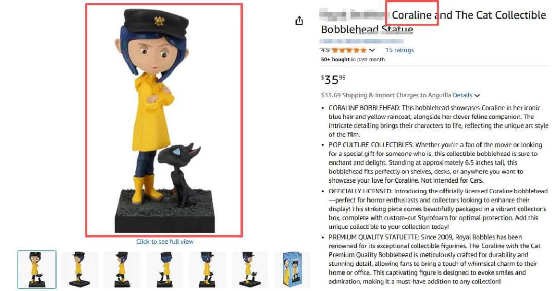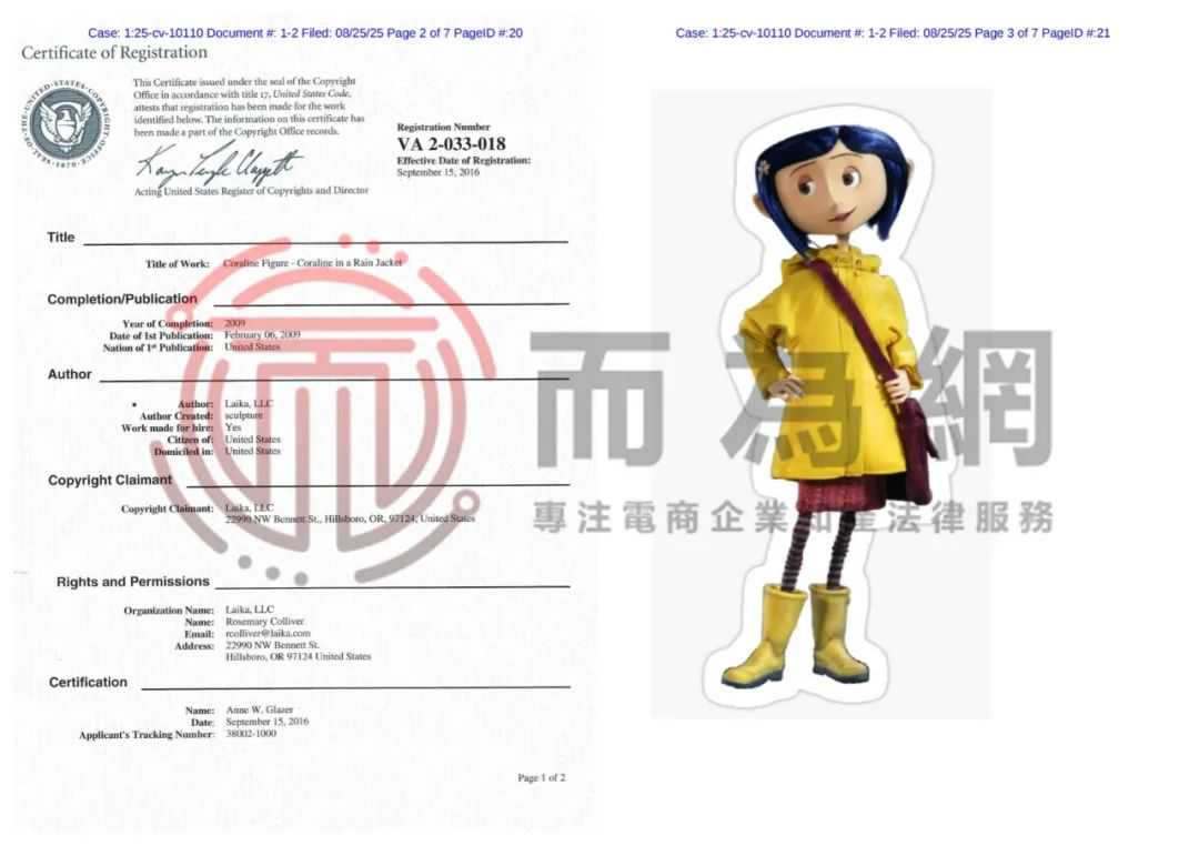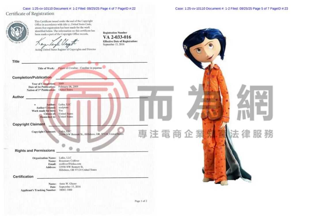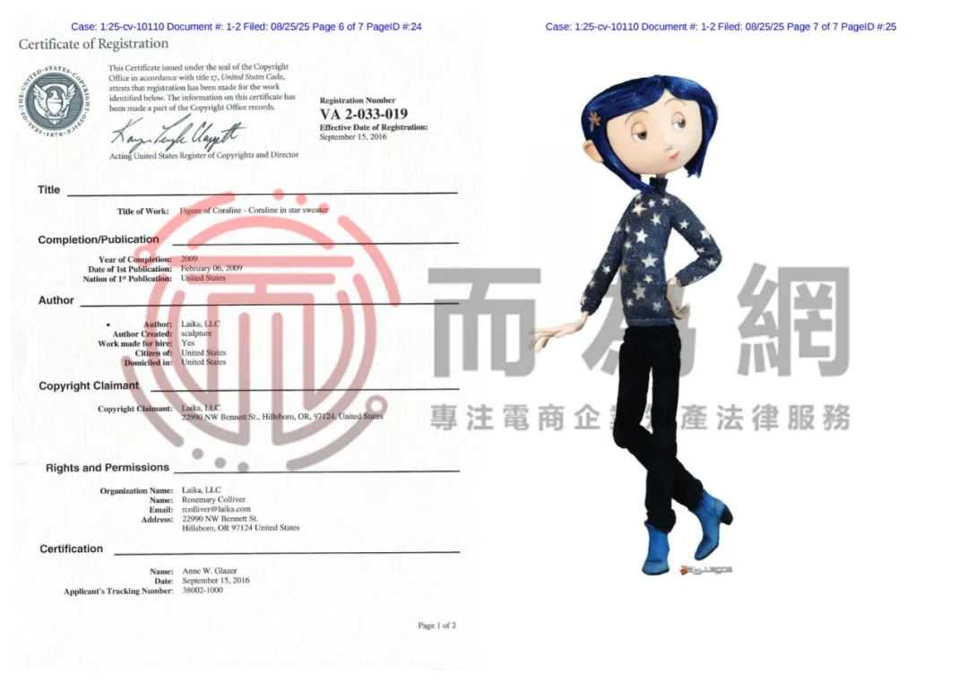 【侵权快讯】25-cv-10110 周边类卖家速看!经典定格电影CORALINE 鬼妈妈商标+版权发案维权中!