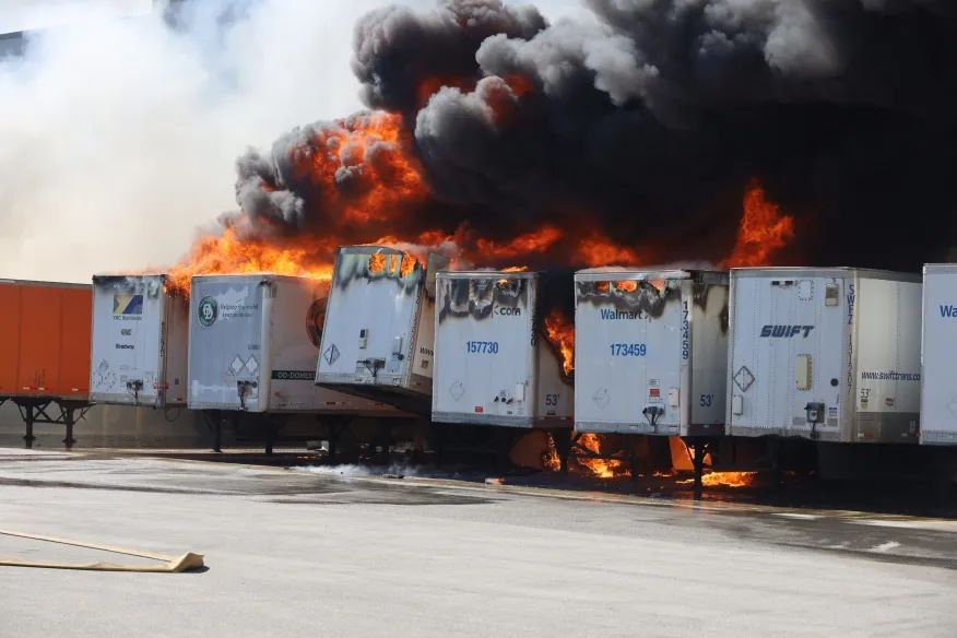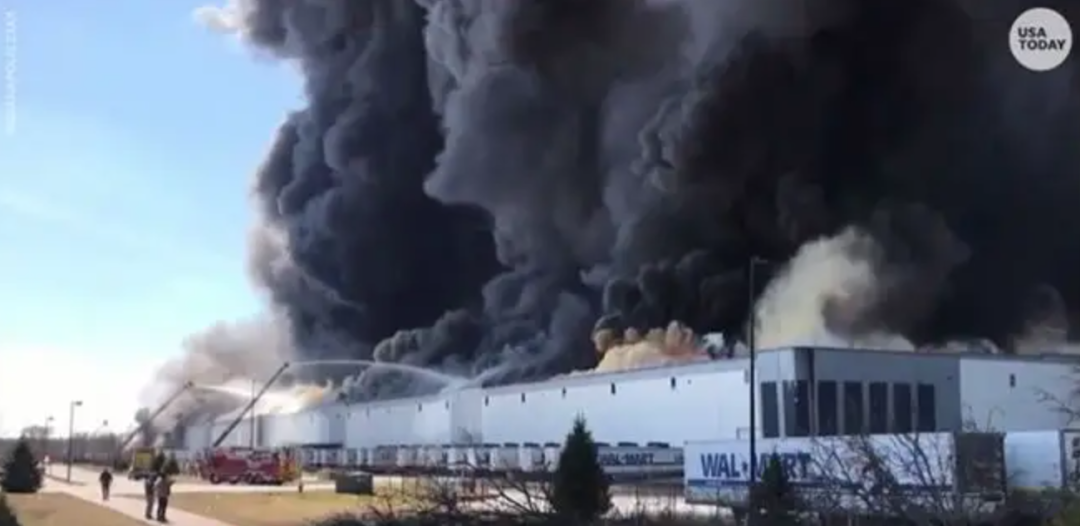 当地时间3月16日中午,位于印第安纳波利斯国际机场附近的一个120万平方英尺的沃尔玛仓库发生大火,不仅库内货件烧毁殆尽,配送车辆也损失惨重。
