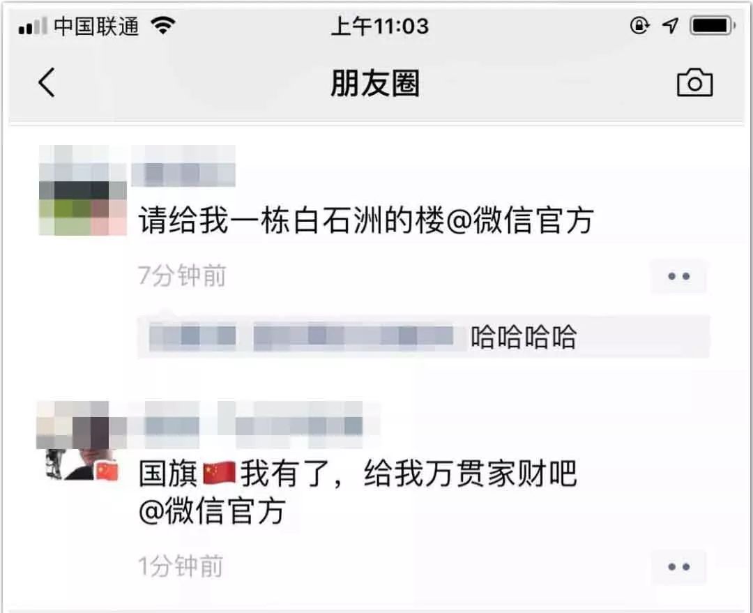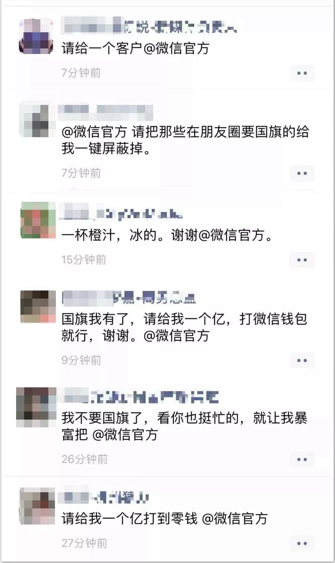 但凡圈友可到之处,一定都已经被请给我一面国旗@微信官方这句话刷屏了吧。