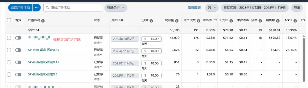 这时候,我的广告架构已经初步成型:自动广告、关键词广告、品牌广告、视频广告、捡漏广告,共同构成了一个完整的流量矩阵。