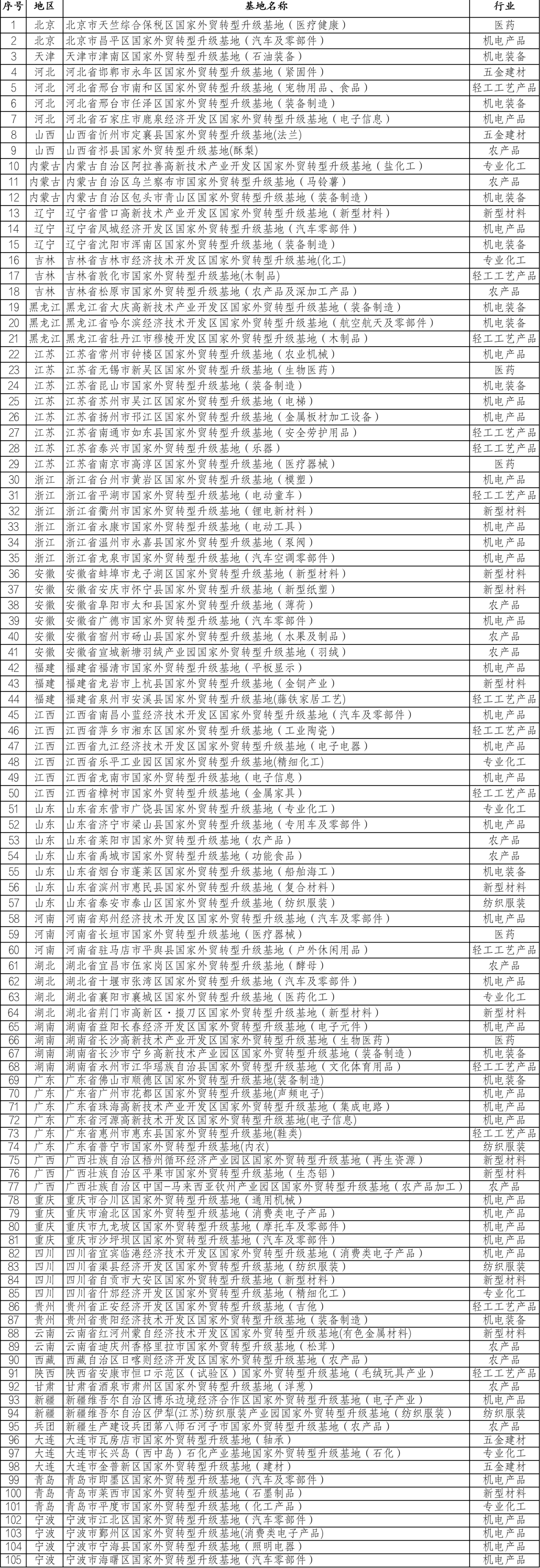 7月4日,据商务部网站消息,贯彻落实《中共中央 国务院关于推进贸易高质量发展的指导意见》和《国务院办公厅关于推进对外贸易创新发展的实施意见》精神,商务部新认定105家国家外贸转型升级基地。