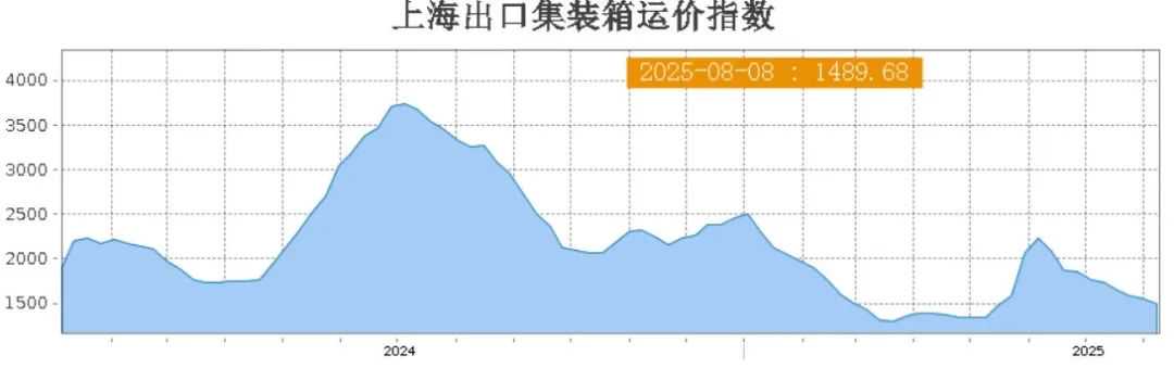 随着美国实施高关税政策,对全球海运需求产生了影响。近日,最新公布的上海集装箱出口运价指数(SCFI)下跌61.06点,至1,489.68点,周跌幅为3.9%,已连续九周下滑。