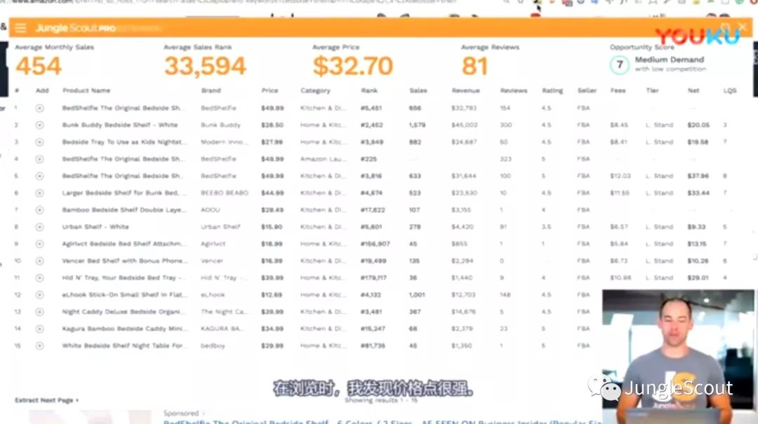 确实挺有意思的,我之前没有见过这个产品,像是一个夹在桌子上的小架子。看上去销量也很好,同样我们还是打开Jungle Scout Chrome 插件工具来看看这个商品具体的销售数据。