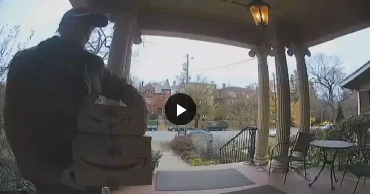 毫不犹豫地,他将亚马逊盒子一个一个地摞起来,然后抱着直接转身就走了,连一点遮掩没有,甚至还与安全摄像头进行了目光接触。PS:这可真够“坦然”的!